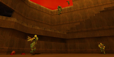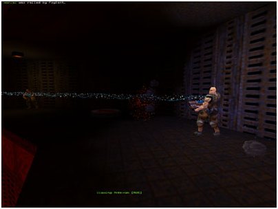 But seriously, Insta-Gib is a mod that needs to be learnt and felt. The pace of the game is unlike DM, Lithium or even Rocket Arena. There is no doubt that the pace is break neck, it’s fast and nasty but with only the rail to play with the rate of fire is always evenly measured. It’s like an old fashion duel with single shot pistols from the 1800’s, you shoot, they shoot and you take turns until one of you is dead. This is a two edged sword. Firstly, there is the advantage of knowing that if your opponent has fired and missed you have 1 1/2 seconds until they can have another shot in which to nail them. The reverse of that though is also true. If you miss your opponent knows he is safe to take aim and fire for 1 1/2 seconds. To this of course you need to factor in every other player in range, players coming into range and players spawning nearby ready to rock and roll. There is only so much you can account for with eight players in a small area, it’s always going to be chaos, but here are some general tips that I have seen others using that work well.