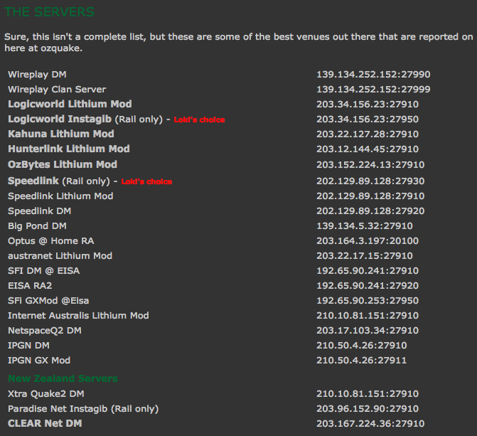 OZQuake: Quake 2 The Servers