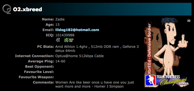 - Firstly, we need to get to know you as a person. Post a message on our forum, telling us a bit about yourself. How old are you? Where (abouts) do you live? What mods do you play? What servers do you play on? Your contact details (ICQ/Email)