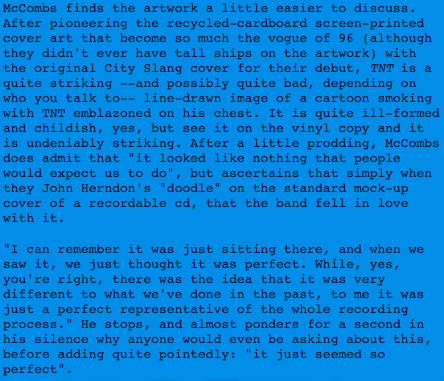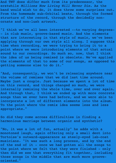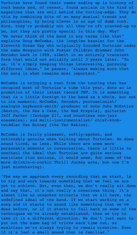 GravityGirl at Shafted.com.au on the Tortoise 1998 album, “TNT”