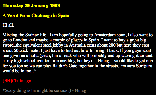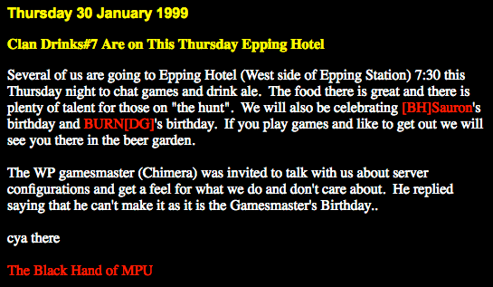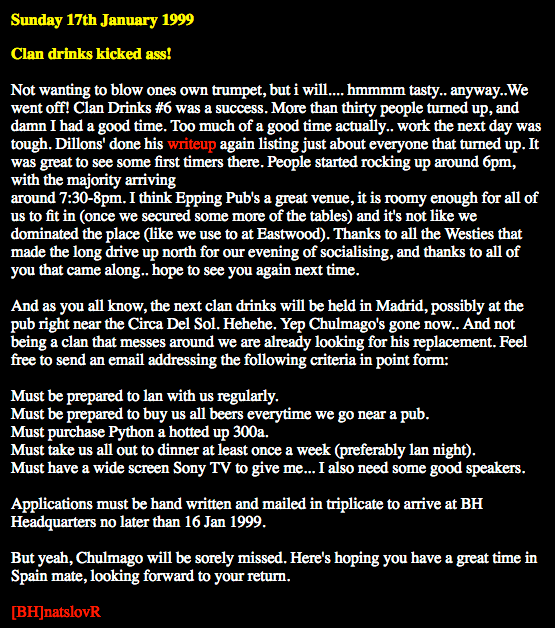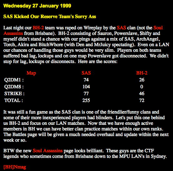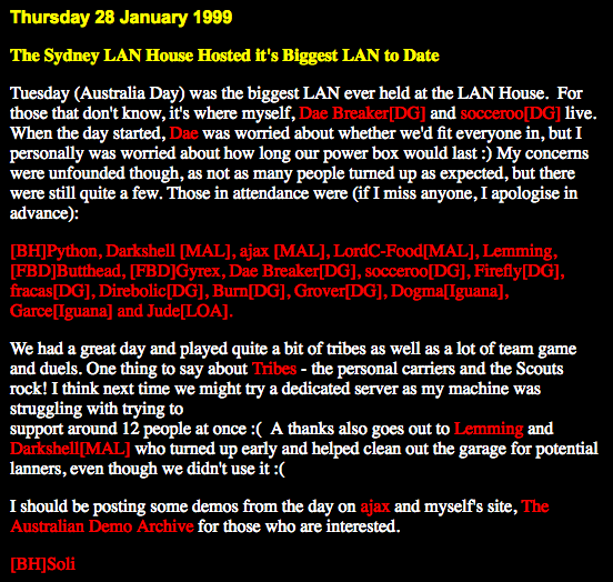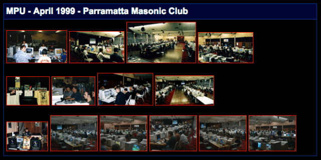 [Note from Donde: This MPU held at the Parramatta Masonic Club was on December 4, 1999, also happens to be legendary hip hop artist Jay-Z birthday. Please click on Dillons report to visit the oocities.org archive of his page of LAN reports.]