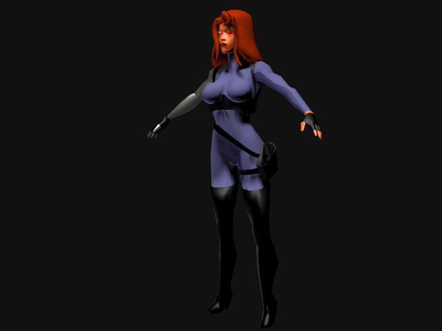 Steed: The pics are actually taken from a 200 frame spin around I did of her. It took me a day to do her hair, about a day to tweak her face, another day to optimize the mesh (she was originally around 10,000 faces) and I had to reduce her breasts since everyone thought they were too big at first. All in all I’ve been messing with her since ’94 so it’s hard to tell how many actual hours I’ve been working on her. The breasts and butt probably took the most time to do (I tend to focus a lot of attention on those areas :p)