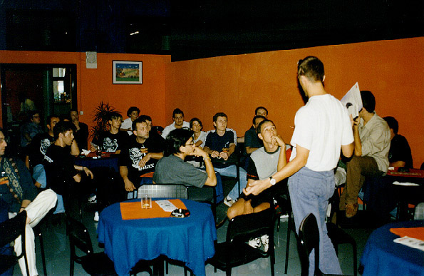 La belezza del Quit’97 e’ stata quella di far conoscere di persona giocatori che finora si erano conosciuti solo tramite un nome di battaglia, sulla Rete. Niente di meglio che potersi sedere ad un tavolo con un panino e chiaccherare con qualcuno di simpatico che non si era mai incontrato di persona!