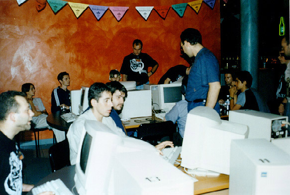 L’entusiasmo, la voglia di conoscersi e di giocare hanno reso praticamente intangibili i problemi tecnici che temevo sarebbero occorsi. La rete locale del Virtual Pub ha sopportato con dignita’ la selva sfrenata di servers Quake delle piu’ disparate razze che nascevano e si popolavano furiosamente.