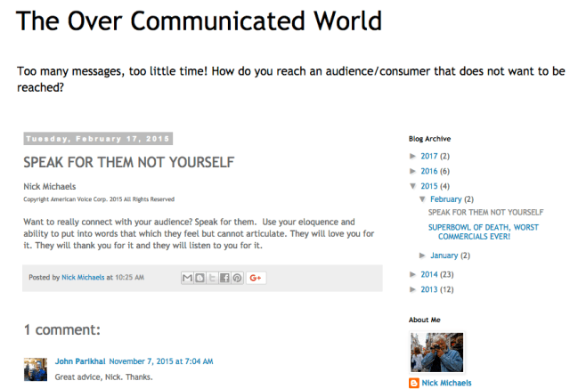 Samples from Nick Michaels blog, “The Over Communicated World”