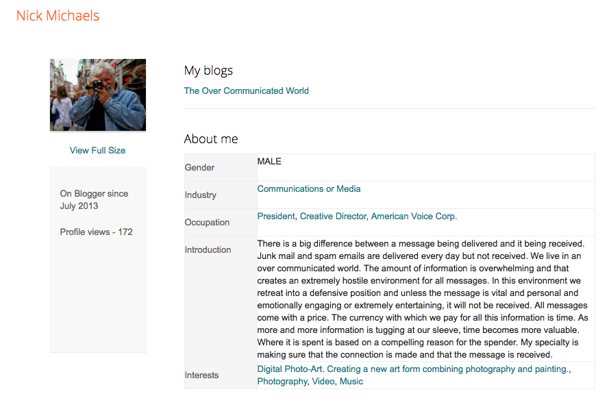 Samples from Nick Michaels blog, “The Over Communicated World”