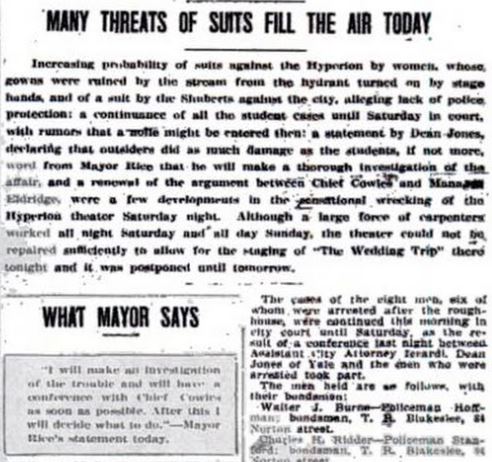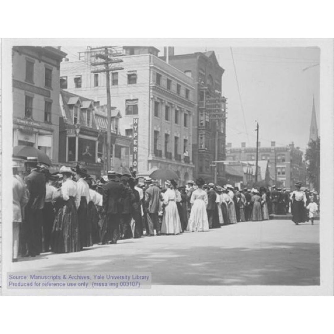 People standing on Chapel Street (Hyperion Theatre,) photo courtesy Yale University Manuscripts & Archives digital images database
