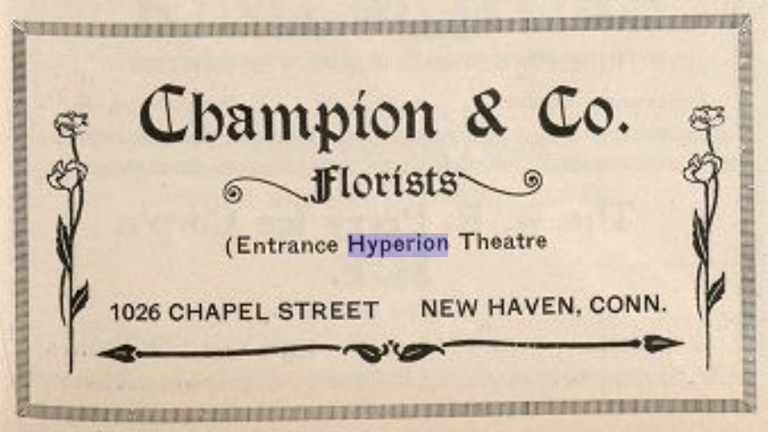Hyperion Theatre program, photo courtesy of New Haven Colony Historical Society / Yale library
