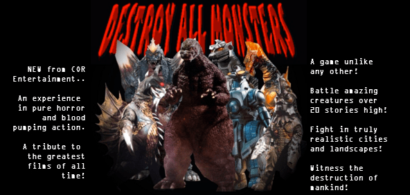 New from Cor Entertainment… An experience in pure horror and blood pumping action. A tribute to the greatest films of all time! A game unlike any other: Battle amazing creatures over 20 stories high! Fight in truly realistic cities and landscapes! Witness the destruction of mankind!