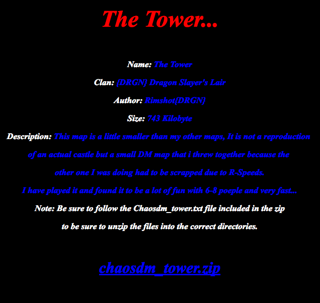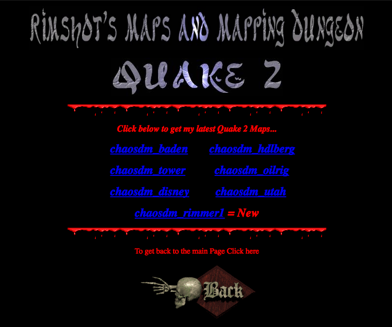 18 October 2000: New design for the mapping page ( hope planet quake likes it ). Linked to it from the index page from the Dragon clan to try to separate the two… It was becoming too much to update everything at one shot and will be easier to manage this way. This is the place to go for updates and maps created by myself from now on.