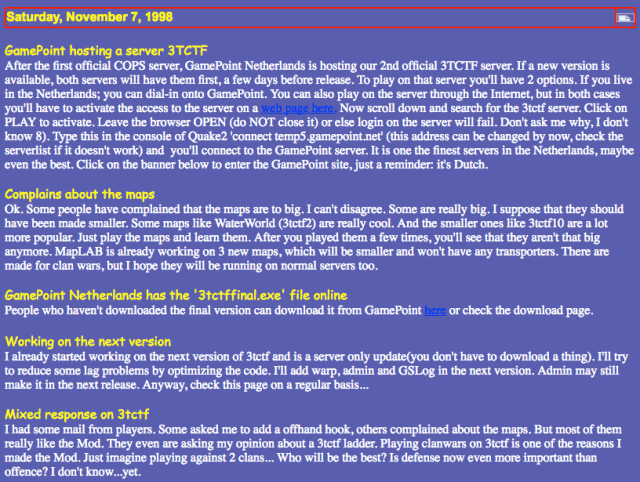 January 15 – 1999 – Major 3TCTF update – MapPack & MultiMod support.