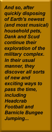 Dank and Scud find themselves back on Earth, only to be caught in the middle of some hideous military experiment gone terribly wrong. Originally released November, 1998. For the full Dank and Scud comics and a complete archive including incredible behind-the-scenes audio by the artist, Michael Houston, please visit: http://www.dankandscud.com