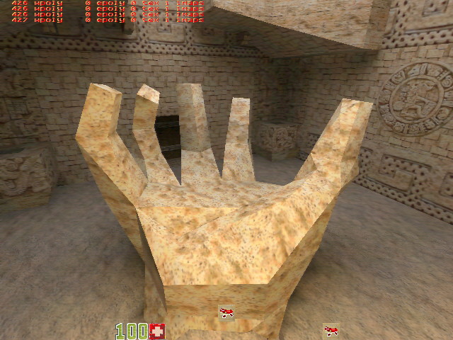 This is a stone hand. You can walk around on the palm and shoot out between the fingers. Really a fun item.