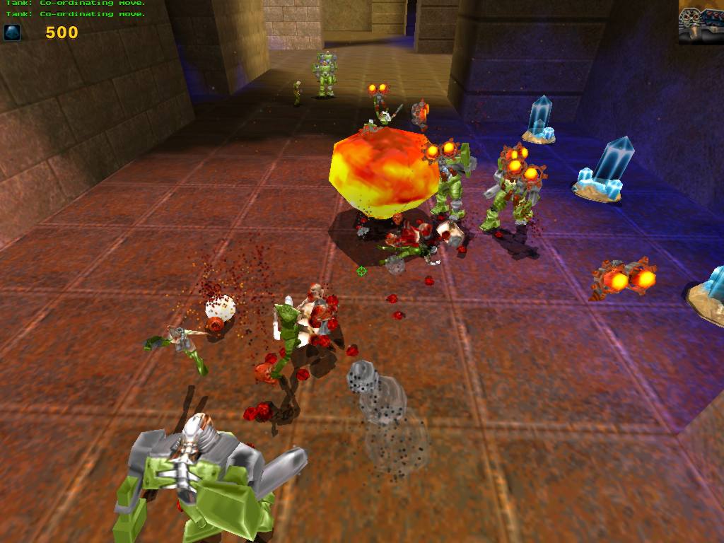 You order around your minions by using the select command (bound as default to left mouse button), and then clicking again, either at a patch of ground to make your unit move there, or on another object to have your unit “interact” with it. The interaction depends upon what kind of object you click on. If you click on an enemy unit, your selected unit will attack. If you click on on a button/lift/door, your unit will try and use it.
