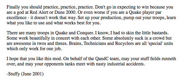 For all the files and full info on this amazing mod please visit the Quake & Conquer website: http://www.bluestar.com.au/qandc/