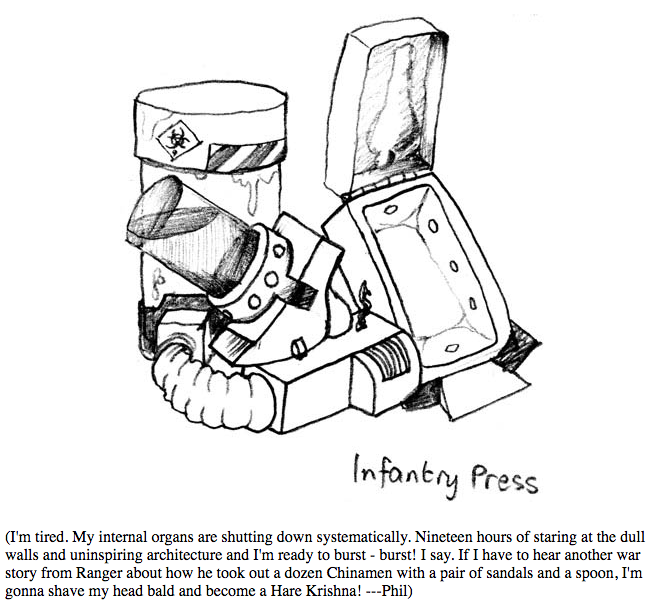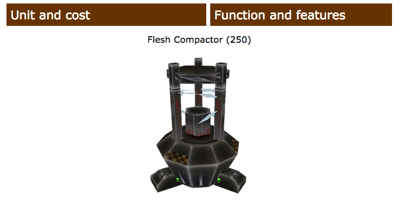 The next machine should try and build is the Infantry Press. This machine is responsible for light infantry, and also allows you to build heavier machines. Using a technician, build an Infantry Press. Once it has been assembled, cackle evilly, and bring up the menu. Choose train, then Infantry Press, Followed by one of the options listed. Like the Central Thing, you can queue units to be built. Building an Infantry Press also allows you to build some defences. If you select a technician, bring up the menu you know so well now, and select build, you can now choose the sub menu ‘turrets’. You build a turret just like another machine, so make sure you’re pointing at where you want the turret to go when you select which one you want. Pick one of the different sorts, if you have enough stuff.