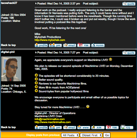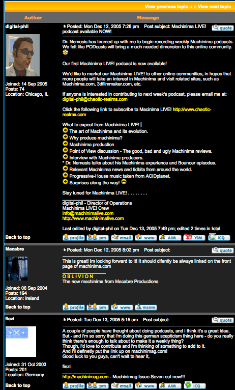 Machinima LIVE! Podcast – Ep. 2 “Flavors of Machinima” 12/20/2005