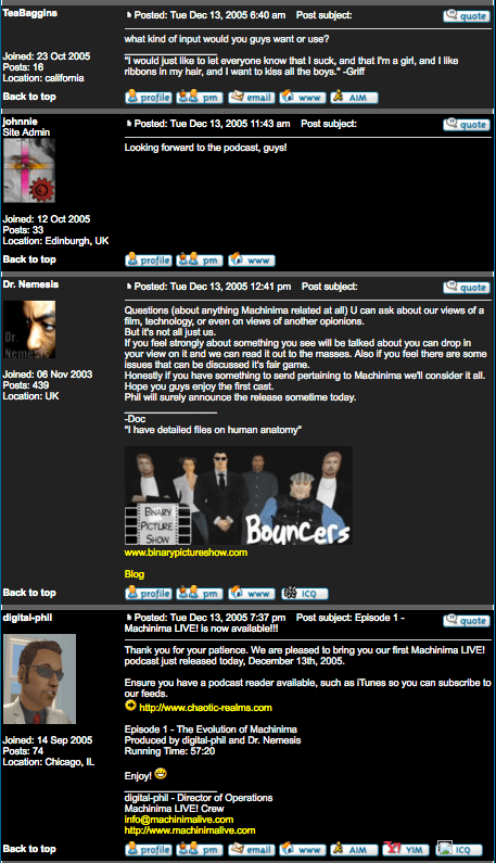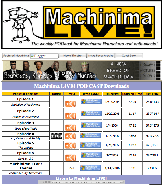 Machinima LIVE! Podcast – Ep. 1 “Evolution of Machinima” 12/13/2005