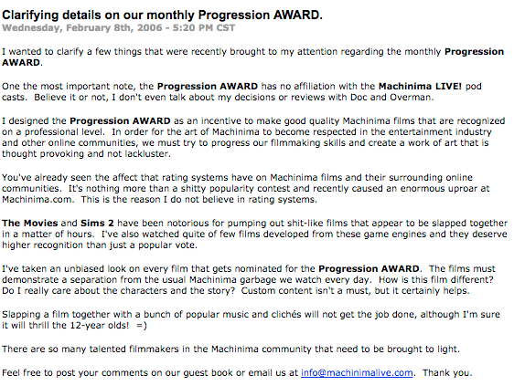 https://web.archive.org/web/20060215215613/http://www.machinimalive.com:80/#News Feed