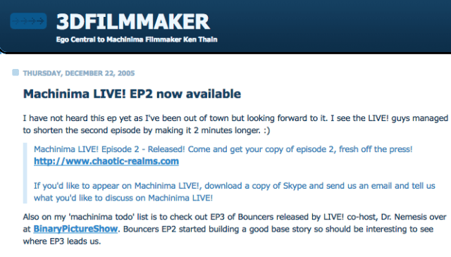 http://3dfilmmaker.com/2005/12/machinima-live-ep2-now-available.html
