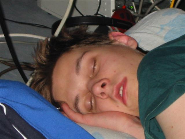 Irgendwann fordert auch der durchtrainierteste Körper seinen Schlaf ein … und ab ging es unter den Tisch [quasi in Hörweite zur eigenen Hardware … Swiftech mit Delta Kühler r0xx ;)]