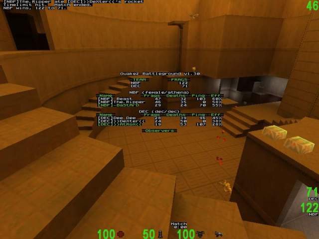 Hi, I’ve got some bad news for you all : Warden stops playing online Quake2…, yes and that is true because it’s taking too much time for his study and it also costs him to much money… but he will quake at every lan-part there is ofcourse :) Well, Andy, I wish you good luck with your study and everything….. And when he comes back he wil rejoin NBF ofcourse… :p