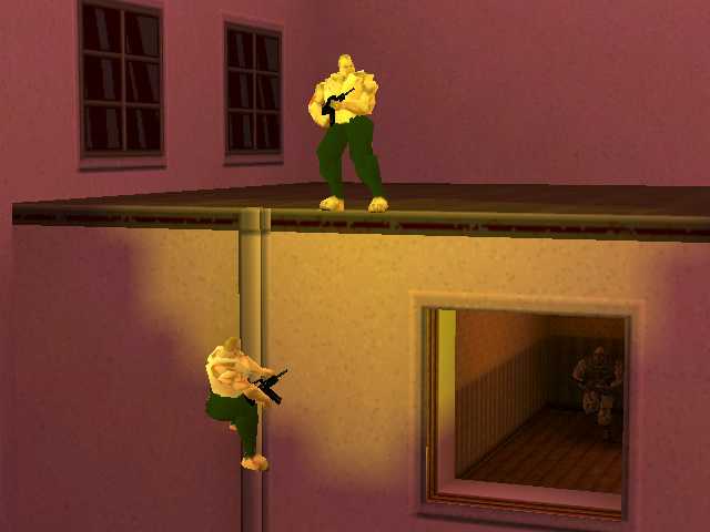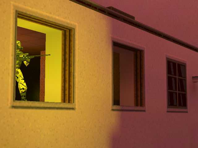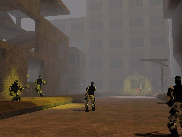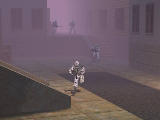 Smart use of the terrain is essential in AQ2. Sniping isn’t done from the middle of the road. Running around in brightly lit places doesn’t offer much stealth. Roof areas cannot be controlled from the streets.
