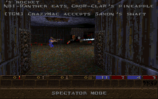 We started out on our server since the UK guys didn’t find a server until the very last moment. This time it seemed like the tactics actually worked. We were able to defend our positions most of the time and won this leg by approx. 130 frags. Xavier observed this leg and tried to make a demo and some screenshots. But of course his computer ran out of diskspace so it only containes a couple of minutes demo and no screenshots :( I have managed to get the screenshot from the demo though:).