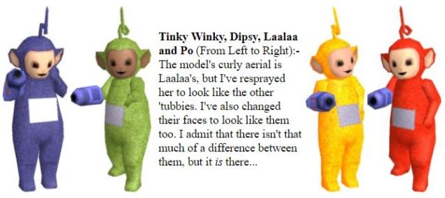 Here’s my version of Laalaa from the great British children’s TV show Teletubbies. I’ve tried to keep the character of the character, the animations are fairly true-to-life and the weapon strapped to the arm is Tubby-Tech styled in blue tubbitanium metal. The tubby-television lights up for one of the taunt animations (and also when in pain, something you don’t often see on the show…) This model includes a full sound-set (all from the show) and eight different skins.