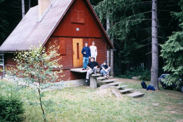 Auto stálo tam kde sme ho zaparkovali, odťahovka našťastie akurát nechodila okolo, tak sme sa mohli dostať už o 11:00 do herne… Tam sa väčšina pobalila a spolu so žrádlom bola odvezená priamo na chatu. Ja som ešte zahral s Gamerom duel v Q2 a v Q3… smrada som ho podcenil dosť, pretože ani v Q2 nie je žiadne Béčko, dokonca vyhrával 4:2, kým som sa nezpamätal z toho a prešiel zmenil som hru typu “duel s Phobosom” na normal a nejako som dobojoval nakoniec. Gamer si ma ale poriadne vychutnal v Q3A, kde som si 2 krát v živote zahral mapu: tourney 2 (tuším)… Celkom ma to bavilo. Až na tú latu… Ale zas spočiatku som sa celkom držal :-) a dokonca som si aj fragol :-). To už prišiel Phobos a SP opustilo komplet herňu. Najskôr sme za zastavili u Jocka, aby si ešte pobral nejaké veci, potom u mňa… Ja som zobral svojho miláčika. Všetko sme to nahádzali do kufra a pobrali sa do Višňového ku Phobosovi domov, aby si zobral svoje nádobíčko. Máti mi ešte pripomínala nech si vezmem tie špekáčky z mraziaka, ale ja som samozrejme nezabudol zabudnúť :-)))) takže špekáčky neboli. U Phobosa sme zobrali kompík, ja som pokukal jeho krásne akvárium s rybičkami, jeho syn mi predviedol “transformers robota”, ktorý sa dal preskladať na tri rôzne veci :-) trocha som si s ním zastrieľaľ, aby mi 5 ročný Maťo nehovoril lamer, potom som mu ešte musel vysvetliť, že nebude môcť celý víkend hrať, lebo ideme opravovať počítač a mohli sme ísť. V blízkych potravinách sme kúpili ešte 2 bedne piva = 40 pív. 20 Radegastov a 20 krát Veľkopopovický Kozel… Mňam. Podarilo sa to vtrepať do kufra ku kompom a aj druhá skupina mohla vyraziť na miesto určenia… Nebol by to Phobos, keby nezabudol najdôležitejšiu vec a síce mäso do guláša :-))) Ešte že má takú super ženu, že mu rýchlo zavolala (ona už totiž rozmýšľa zaňho). Neboli sme ešte ďaleko, tak sme sa mohli vrátiť bez toho, aby sme utrpeli väčšie straty :-) Pred 13:00 sme vyrazili do Kuneradu, dedinky neďaleko Rajeckých Teplíc.