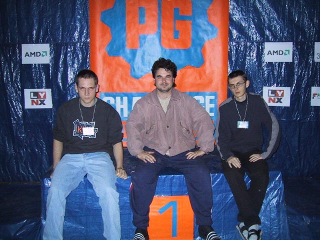 Do herne druhá časť osadenstva (ja, Ebo, Phobos) dorazila krátko po deviatej hodine a začalo sa jej kolonizovanie a prispôsobovanie počítačov k obrazu nášmu. Len Šimon akosi nemal vo všetkých počítačoch namontované PS2 porty, tak som montoval ja :-) Z toho v dvoch kompoch nefungovali, ale nakoniec to akurát vyšlo, lebo Džodžo s Jockom hrali na sériovkách, lebo nemali vlastné myšky. Heh, ja som sa usadil za Šimonov komp s 21″ monitorom, tak som si musel chvíľku zvykať, ale ako som zistil, moc sa venujem škole, lebo som sa poriadne zlameril a ta sviňa myš už tiež nechodí tak ako za starých časov keď bola nová… Ibaže môj Artec stojí až 100 Sk a toľko investovať do počítača, to si môžu dovoliť fakt len profesionálni quakeri v USA :-))) Ja som ani moc nezahral, pretože som sa sral s tými počítačmi stále, ale čo už. Okolo 23:00 som už začínal pariť FFA v Q2… Jocko akurát moc nehral a potom sa aj napojil neskôr, tak som viedol scóre, ale napr. taký Ebola sa za chvíľku prebojoval na druhé miesto. Keby chcel dotiahol by to v Q2 vysoko… :-) Potom som dal ešte nejaké duely s Johnym, kde sa zas ukázalo ako som cvičil s Jockom, a zahral som aj jeden cvičný s Phobosom. Tam zas bolo vidno, že Phobos cvičí všetko len nie Q2… Napr. Fallout 2… (mal by ísť už na Quake dôchod, ak chce takto pokračovať ďalej amatér). Jocko hral aj Q3A kde sa celkom chytil dá sa povedať. Ja som každopádne paril len Q2 a nič iné. Ale veď ostatní by mali popísať reporty tiež, tak tam sa dozviete isto viac, čo kto hral… Akurát viem že frajer RIKI z jedného lokálneho miniklanu, ktorý sa cvičí v herni, a ktorý na nás akože mal dávať pozor dostal od Eba pekne cez prdel niečo cez 50 mal Ebo a Riki si ani nefragol, asi aj pod mínusom bol… Aspoň už bude držať hubu do budúcna :-) Čo som ale mal možnosť vidieť, Ebo rozhodne patrí medzi špičku. Ani sa nedivím že nám ho NR chcú pretiahnuť (ale to už spravil Gamer na chate, spali v jednej izbe tuším) do ich klanu :-) Teraz som zistil, že sme mi dementi nehrali TP v Q2… kua sme mohli kľudne aj 4 on 4… Paril som aj s Phobosom asi do štvrtej ráno, ale potom sme sa pobrali dom vyspať sa, aby sme mohli ísť ráno nakupovať. Tri hodinky som si doma pospal, ráno sa dal trocha do poriadku… Mamička narobila chlebíky pre tých čo ostali v herni, ja som sa ešte pobalil na chatu a o 10:00 prišiel po mňa Phobos. Chlebíky sa zaniesli do herne, tam akurát pospávali na madracoch Jocko s Rikim :-), dali sme chlebíky kobylkám, ešte sme chvíľu zahrali a zas sme ich opustili => let’s go nakupovať.