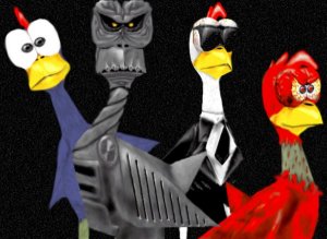 Among them, Mr Soft – An infiltration and sabotage expert. Cybor Chicken – A highly advanced robo chicken. Psycho – Weapons expert, and generally mad! And… A blue chap that got on the wrong ship beliving he was going to see his mother on Alpha Centari. While undercover at a chicken farm (trying to make contact with Earth chickens) they discovered the horrible fate that lay in wait for their Earth brothers. Observing a chicken plucked before them Psycho pulled out a rocked launcher and blew the farmer into numerous pieces. Now they have made it their mission to take the Earth single handed for the glory of their chicken heritage. However the farmer was part of a secret organisation known as the Black Friars, now they have vowed revenge on THE CHICKENS FROM SPACE! The story continues…