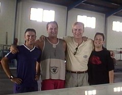 En la sala de sudor. Tex, Barb, ViiX y Wotan. …y ahora que haces Barb, mira la cara de Woty, o es que se lia, en vez de decir “patata” los alemanes dicen “orinoko”?