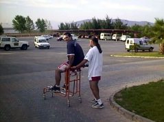Ohhh, ya es lunes por la mañna y recogemos la ultima maquinaria para darnos el piro, Q3C-Voy lleva a Padrino (despues de comerse medio jamón y 50 botes de cerveza no esta la cosa como para andar ….)