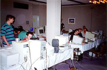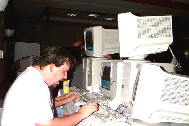 A huge thanks goes to the companys and people that helped make QuakeCon a success. Those include Activision, Micron (for supplying many of the PCs!), id Software (for the ballroom/big part of generator bill), H3D, ION Storm, and Ritual. Also, thanks to Chris Roberts and Pat Carmichael from Multi-PC for the pictures.