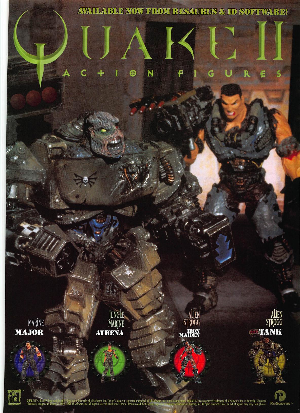 Quake II Action Figures by ReSaurus On August 12, 2019August 12, 2019 By DondeIn Quake 2 art The above images were sourced from the following PC gaming magazine scans, courtesy of Archive.org: GamePro, October 1998, magazine scan courtesy of Archive.org. Gamers Republic, issue 10, magazine scan courtesy of Archive.org. Gamers Republic, issue 14, magazine scan courtesy of Archive.org. PC Gamer, July 1999, magazine scan courtesy of Archive.org. PC Gamer, July 1999, magazine scan courtesy of Archive.org.