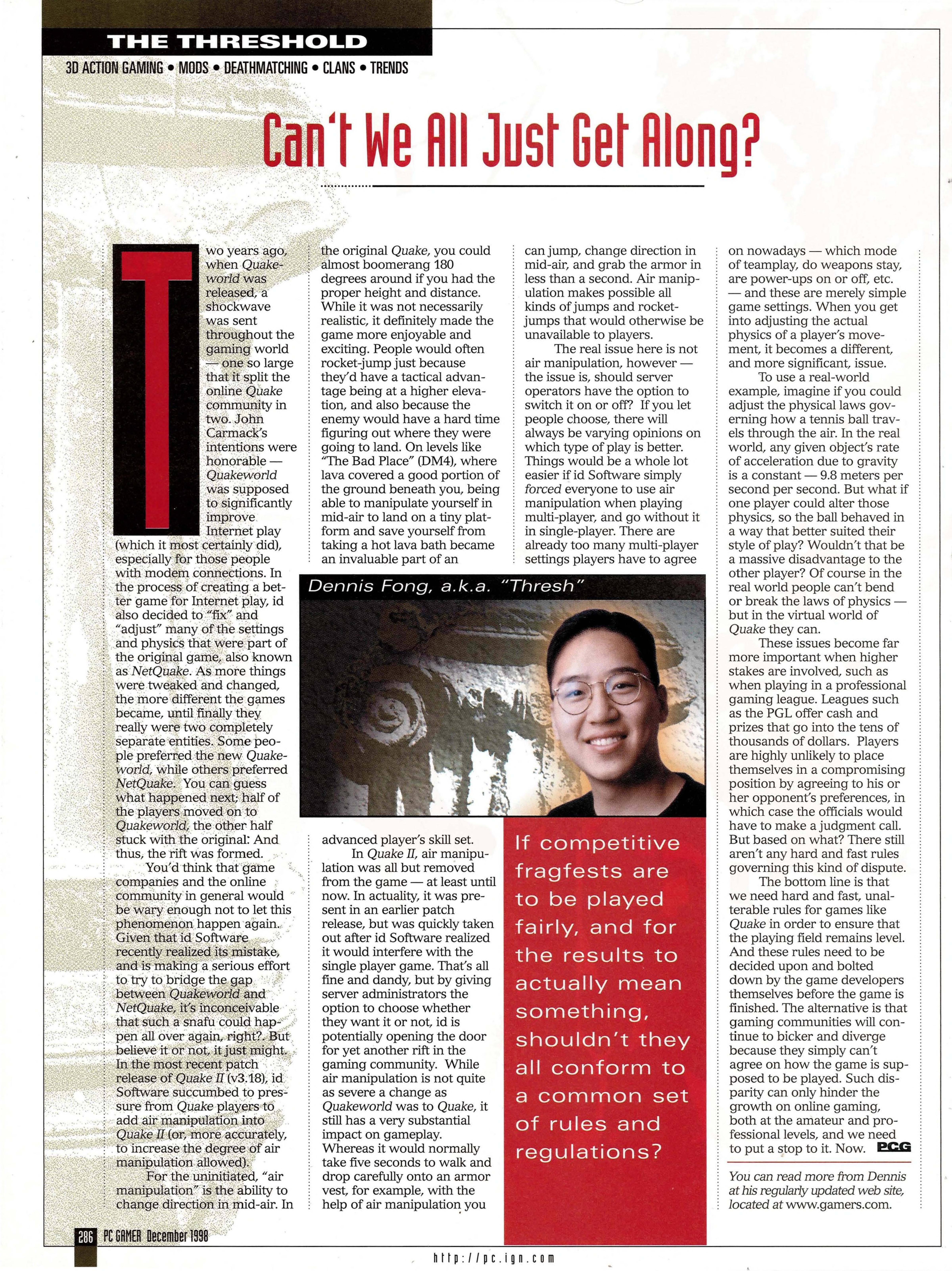 “The bottom line is that we need hard and fast, unalterable rules for games like Quake in order to ensure that the playing field remains level.”