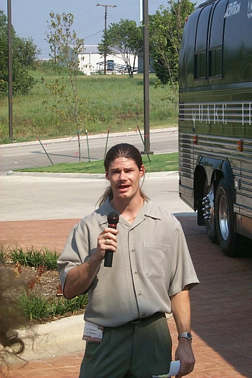 “Todd Hollenshead melting in the Texas sun as he introduces the Q3 bus.”