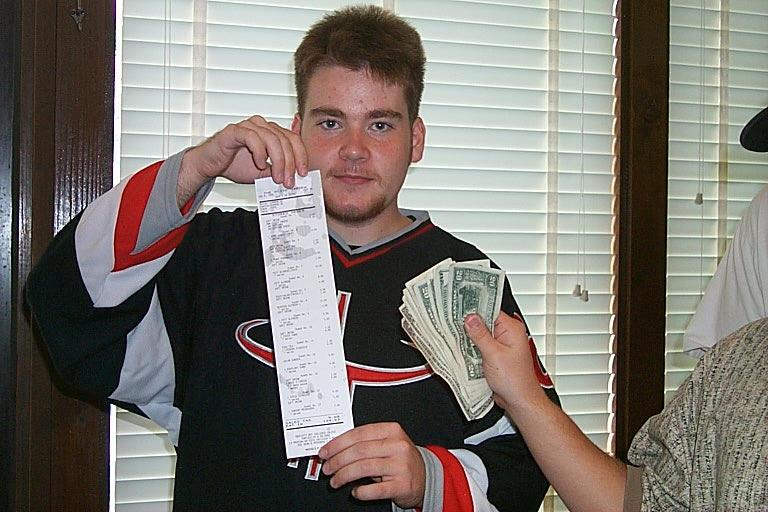 “Rix-r3v holding up the receipt and cash for our huge group lunch at Olive Garden.”