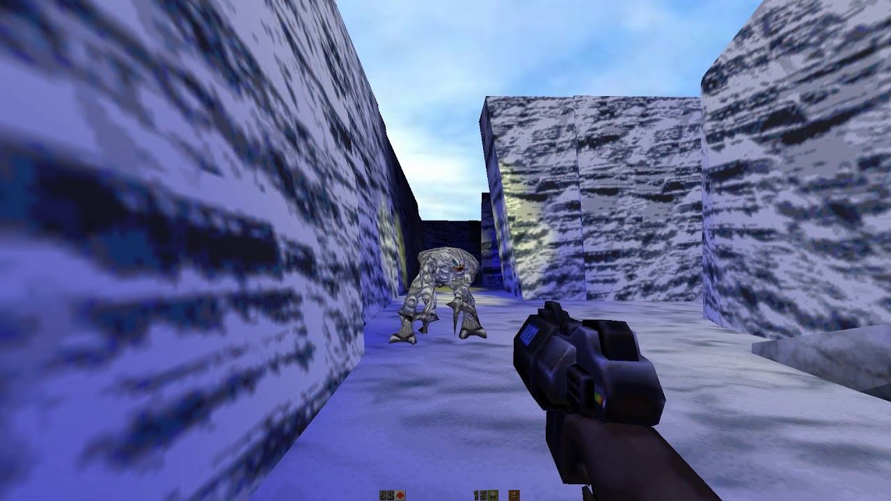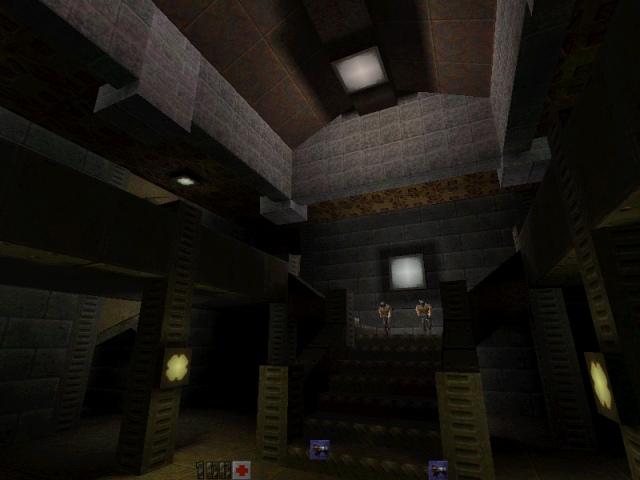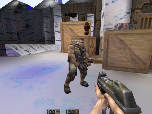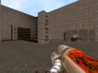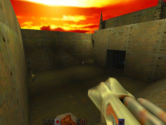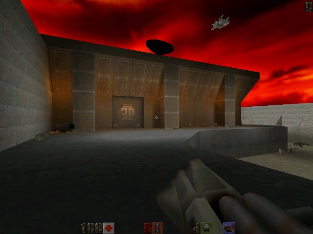 The damn thing kept me going for a few hours, despite the levels being quite small. The one thing which made this pack was the originality. You’ll find a number of new (or tweaked) enemies – improved soldiers, railgun shooting flyers, a new kind of Gladiator and Commander – both of which are very hard as they take alot of hits and to top that off a brand new enemy, the regular player models with chainguns! And almost all of them use a shield, which unfortunately will get you a little worried about your ammunition most of the way through. And that fact that all four of Q2’s bosses make an appearance, yet none are the final episode boss!