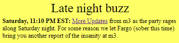 Unfortunately we missed 95% of MSNBC‘s presance on Sunday, due to the fact that Wanker refused to wake up :) Once we got his lazy butt out of bed, and took real showers, we headed back uptown to Psuedo for more of that wacky brand of crazyness that only M3 could bring. After pleading with Bastard (and promising him plenty of Sunny Doodles) I managed to get myself and Phoeb entered into the contest (we had slept through the registration). I had the pleasure of watching Gandalf and PMS_Phoenix have an amazing Orb vs. Orb battle, and then had a blast getting my ass beaten by Phoeb.