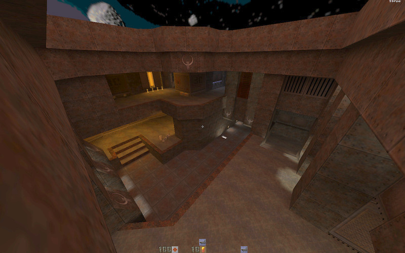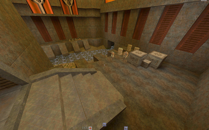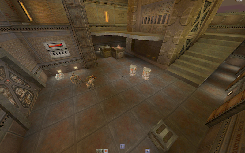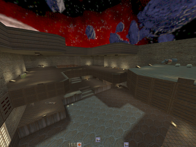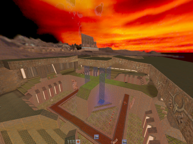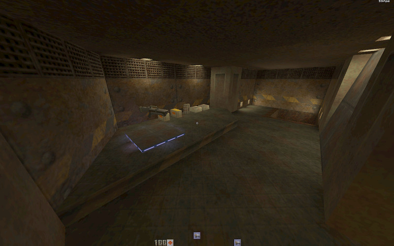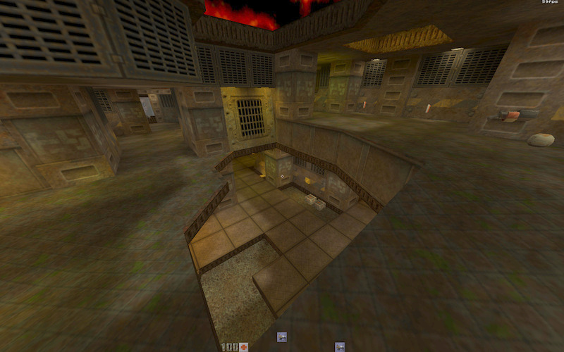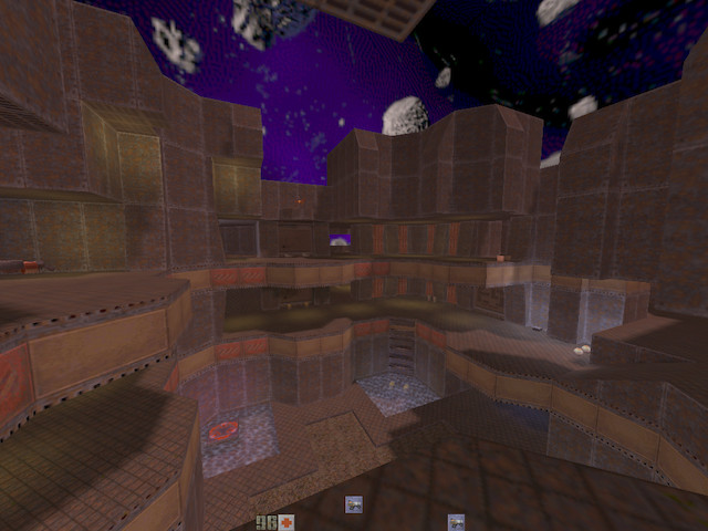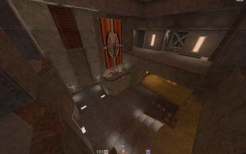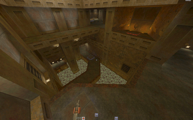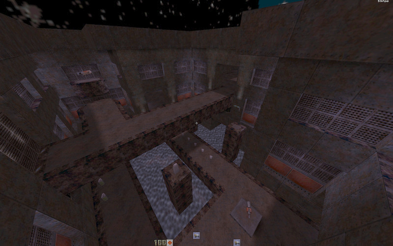 The second level in the QMass Resurrection series. Strogg base textures, trick jumps, good connectivity. I’d been waiting to use this name for years..