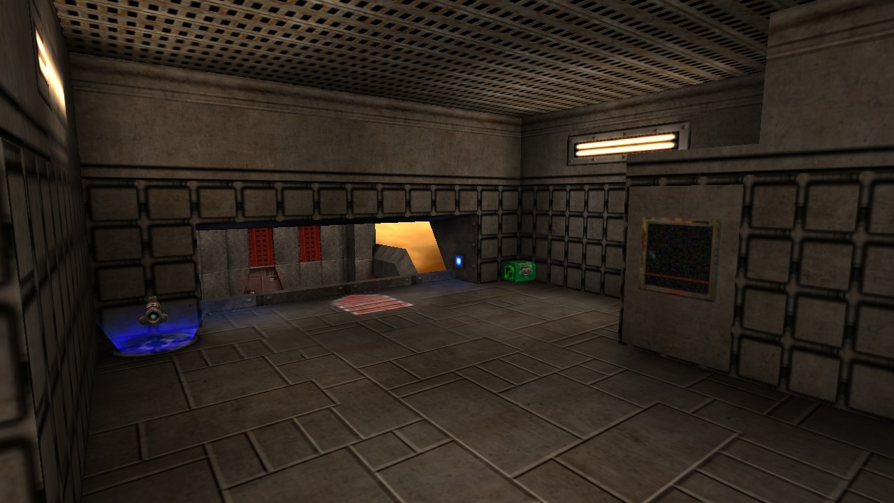 Sithlord used a texturepack by Kiltron to give this remake a solid Q3A feeling while still retaining the original Quake II layout. Some areas are perhaps a bit empty but when compared to the original there isn’t much of a difference.