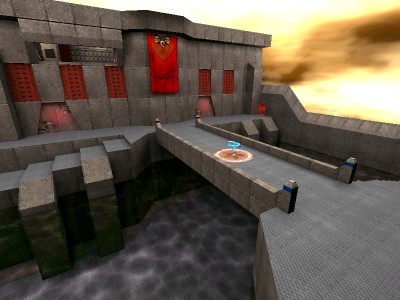 “This map is included in the PureCTF map pack as a special tweaked version, tailored for the PureCTF mod. This map is also included in an AllianceCTF map pack, as ACTF33. Update: SithLord has fixed a few bugs, removed the Power Armors (due to them being far to powerful) and replaced the Quake II crate textures due to copyright issues. We have removed the old version, so please download version 2.