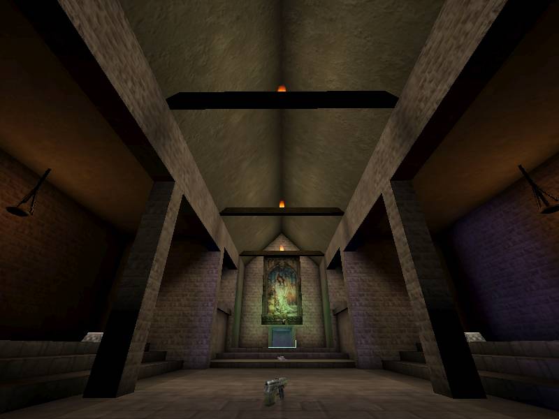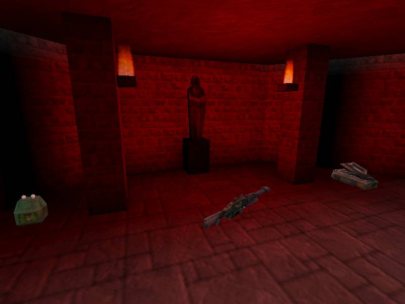 Because this is a modified Q1 map, players should get good performance on just about any system. (Most of the work was done on this map while I still had a Voodoo1 accelerator.)