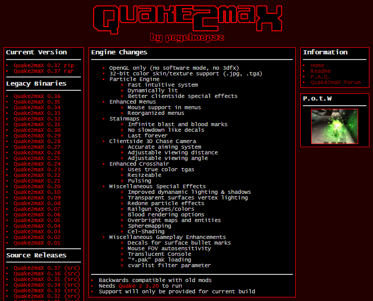 “Well, I redid website stuff, and now I should probably go and set up Some sort of news script for this front page. I converted all pics on this subsite to png (execpt for jpg screenshots of course), and I’ll be releasing a new version of Quake2maX in the very near future.”