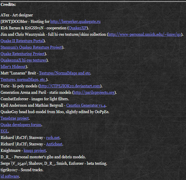 Quaddicted: Quake Expo 2011 — Berserker@Quake2, Heavily Modified idTech2 Engine, by Borodulin Serge On March 16, 2020March 16, 2020 By DondeIn Community, Entities, The mods of Quake 2 For the full photo set shown at the 2011 Quake Expo booth for Berserker@Quake2, by Borodulin Serge, please visit: Quaddicted.com archive. Berserker project, by Borodulin Serge, website: http://berserker.quakegate.ru