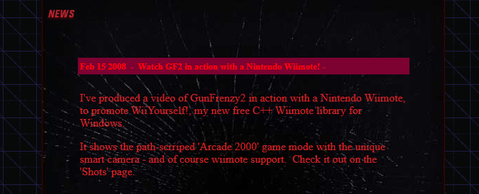 So, finally, the full release. It’s been a long stretch; my first full release, my first Installshield installer, my first ActiveX code, my first launcher… and so on. GunFrenzy started out as a testbed for something I got obsessed with some months ago – lightguns.