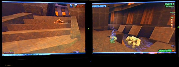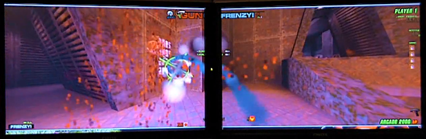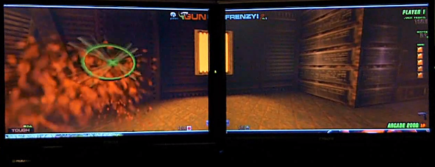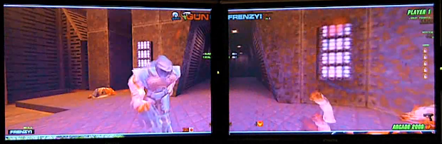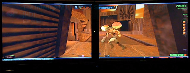 … so anyway, I’d been dabbling in Quake programming since Q1. The most intense programming probably went into my (mostly unreleased) Q2 mod, the Q2DEATHTRAP ! (a lot of Deathtrap stuff actually ended up in GunFrenzy). The idea was to find some lightguns, and try a few things. Quake2 was the obvious candidate for getting something up and running quickly (knowing it inside out), and it was always going to be really interesting to see how FPS games would work with lightguns instead of mice.