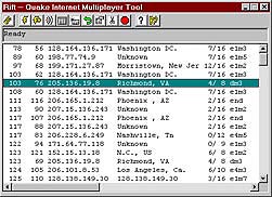 While I was checking up on all the server browsers, I decided to login to Mplayer to see what they had for Quake II. After several minutes updating my software, I found an option to connect to a lobby with rooms that are linked to servers that AREN’T ran by Mplayer. These are regular servers found on the net! When you make your OWN chat room on this, you get what looks like (gasp!) a server browser (See image). It must be pulling a server list off of one of the master servers. It takes about 5 mins for it to query all the servers, but it updates on the fly so you can choose a server before the update is complete. Then your room opens up on Mplayer. On the main screen is a player list, and server info list. It will list players who got on that server by other means. You can also hit the PING button to refresh your current ping (See image). However, I found the pings on this to be about 100ms less than it is in the actual game.